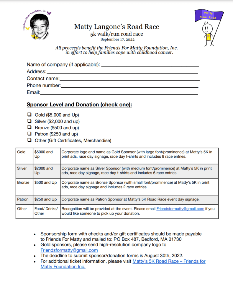 Donations can also be made on the main page of the website as well as the donation section on our RaceWire page which will display your name and donation!